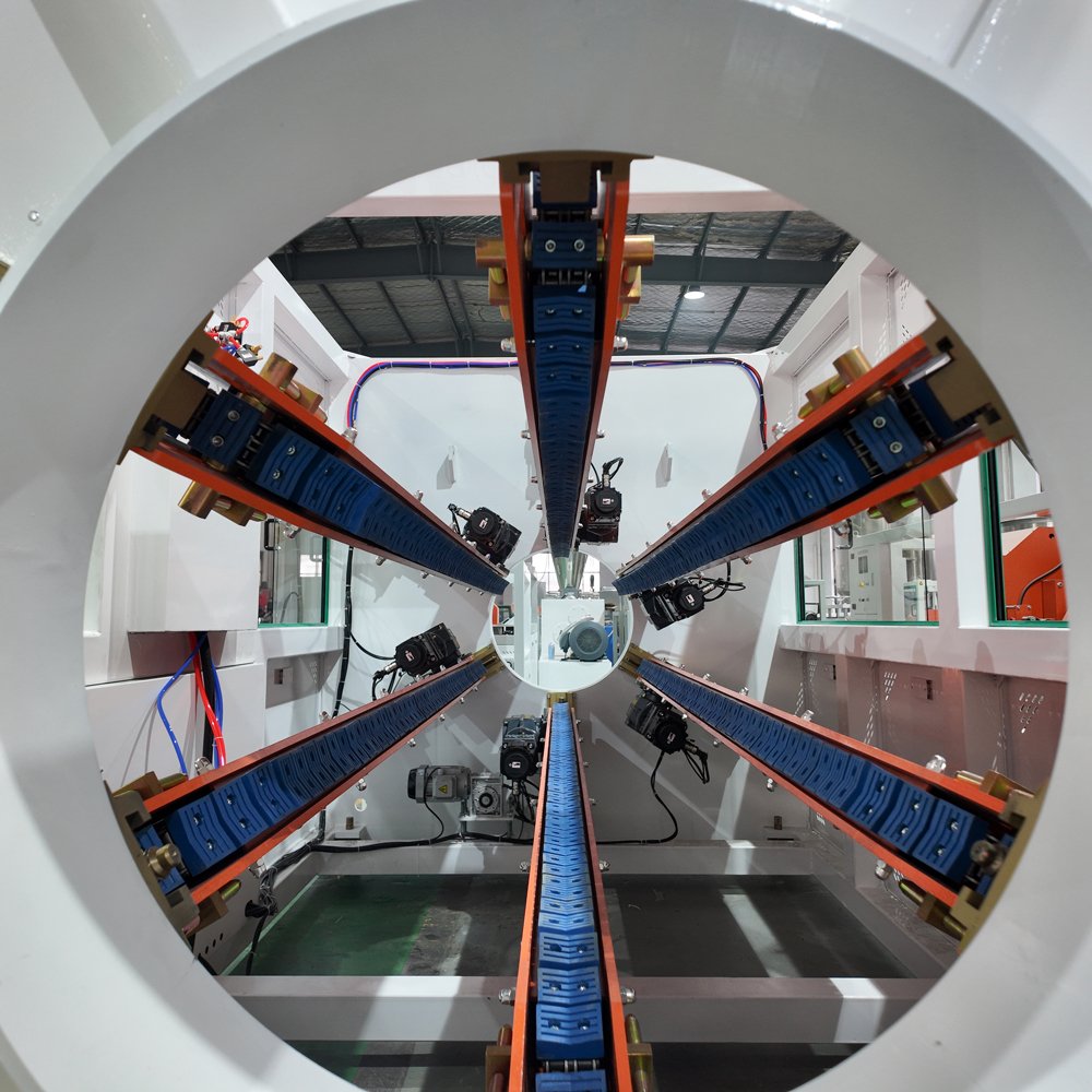 • Lower haul-off frame: motor-driven lift/press mechanism for precise pressure control and diameter changeovers.