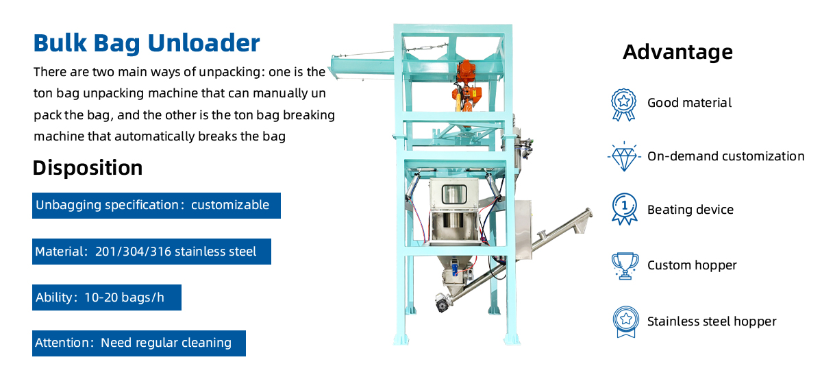 An integrated big bag discharger with a stainless-steel screw conveyor feeder engineered for reliable, dust-tight unloading and continuous conveying of powders and granules. Optimized for stable throughput, low maintenance, and safe operation across construction chemicals, plastics compounding, food ingredients, and battery materials.