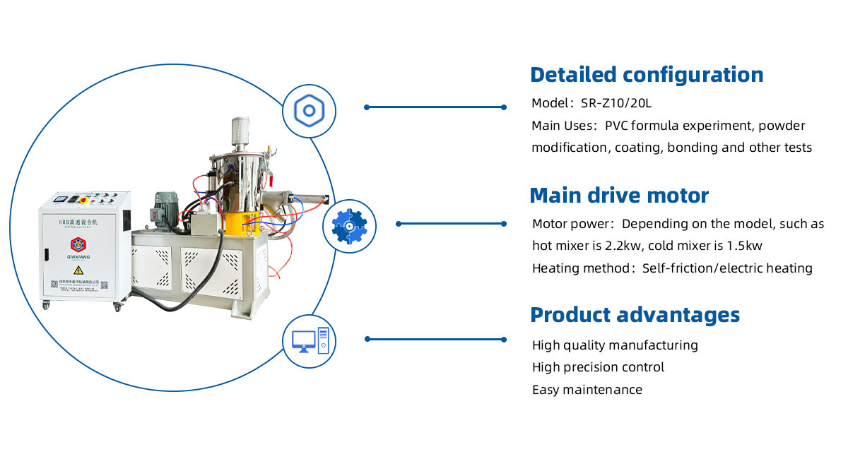 The SRL10L laboratory high-speed mixer is a compact, high-shear mixing solution engineered for R&D, QC labs, and pilot-scale production. It delivers fast heat exchange, uniform dispersion, and repeatable batch quality for PVC dry blend, PP/PE compounds, and color masterbatch, helping you scale innovations from lab to production.